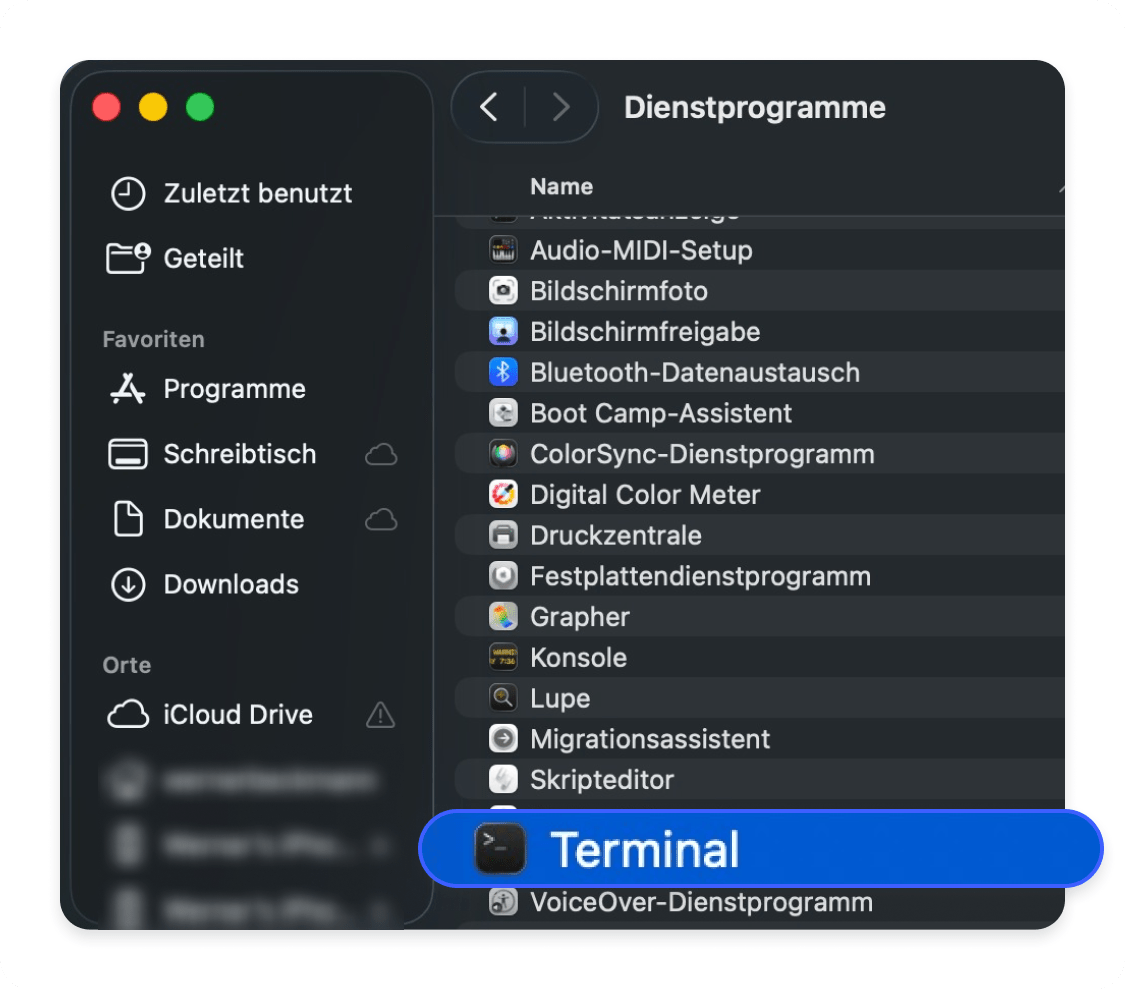 - 2.Öffne den Ordner „Dienstprogramme“ und starte das „Terminal“.