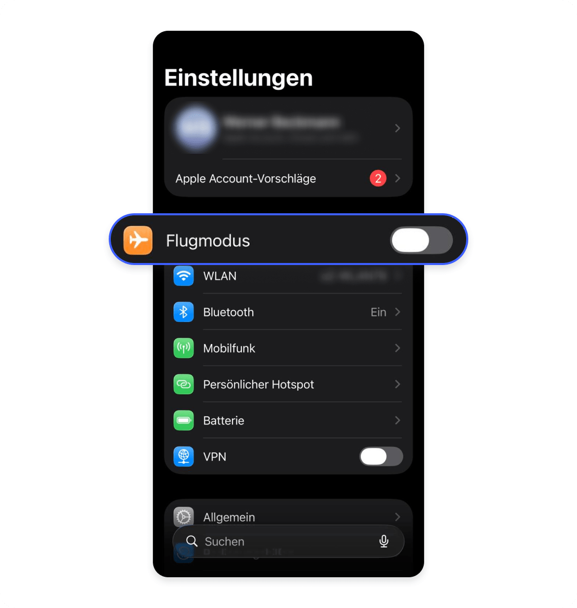 - 2.Suche den „Flugmodus“ und tippe darauf, um ihn einzuschalten.