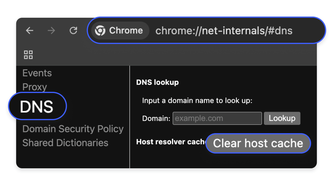 Browser haben ihren eigenen DNS-Cache, getrennt vom Betriebssystem. Wenn du den DNS-Cache auf deinem Gerät, aber nicht in deinem Browser leerst, könntest du beim Surfen immer noch veraltete DNS-Einträge verwenden. Hier erfährst du, was du tun musst, um den DNS-Cache in den Browsern Google Chrome, Firefox und Safari zu leeren.