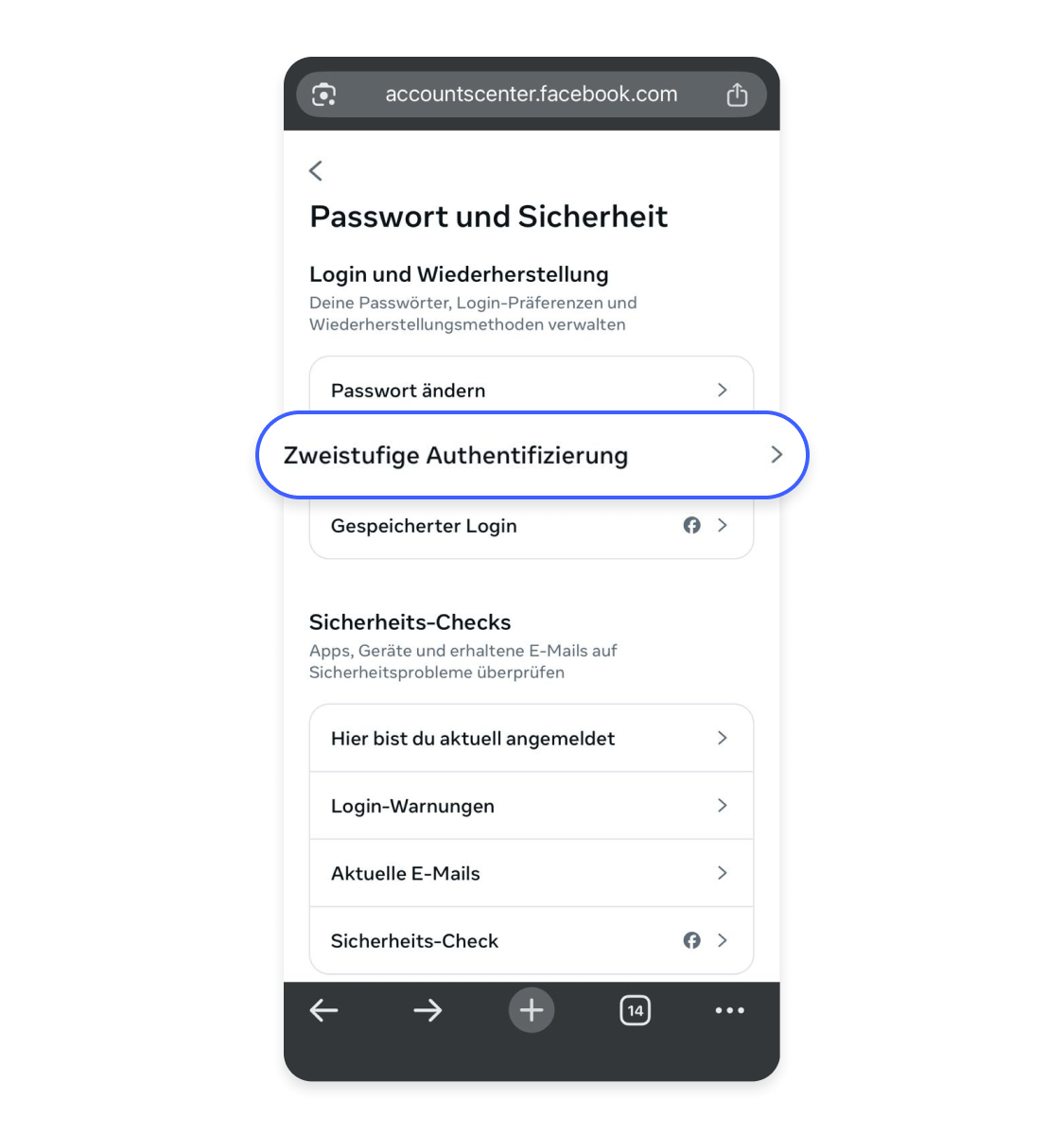- 4.Scrolle zum Bereich „Zwei-Faktor-Authentifizierung“.
