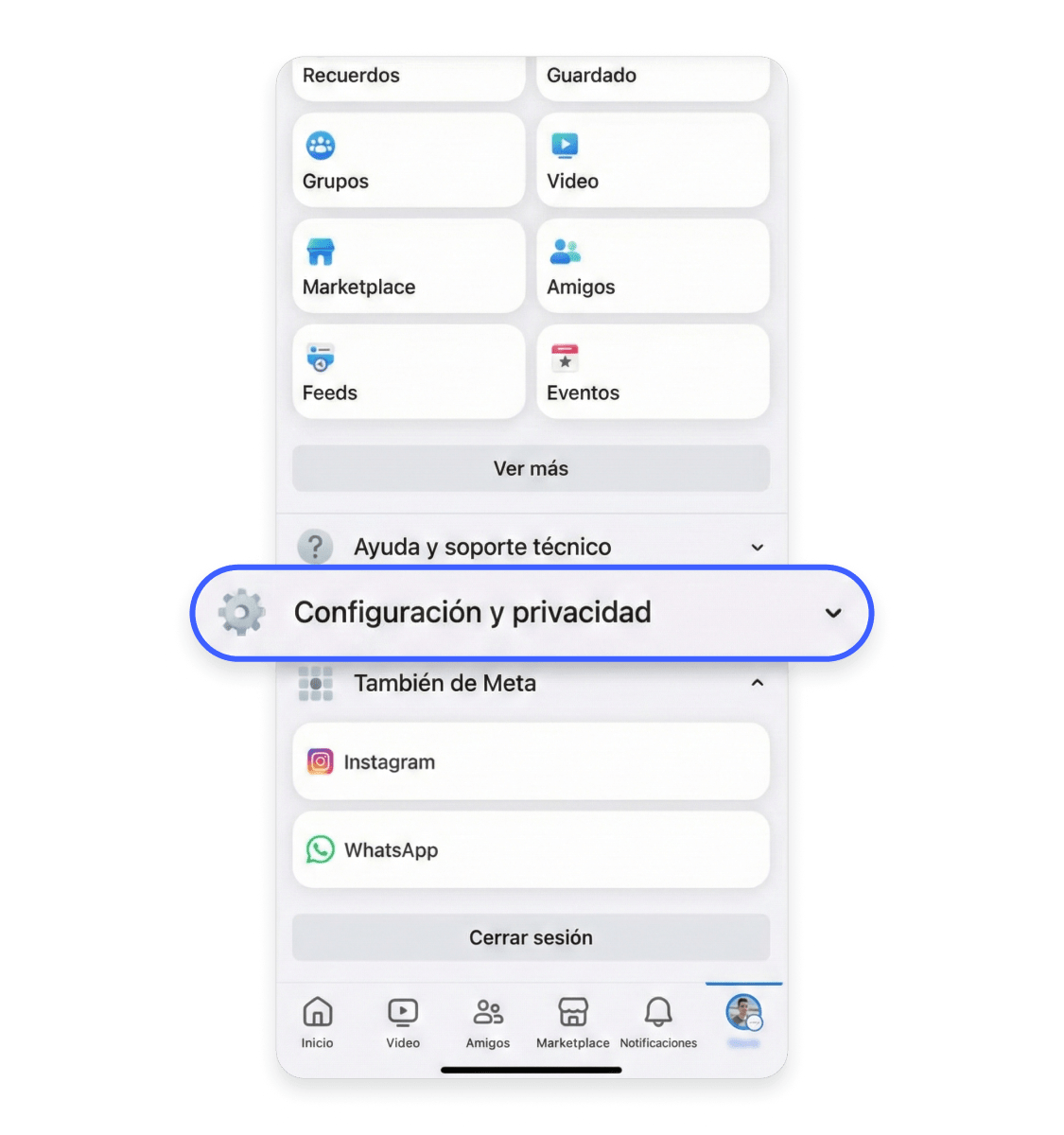 - 2.Toca tu foto o el ícono de menú y ve a Configuración y privacidad.