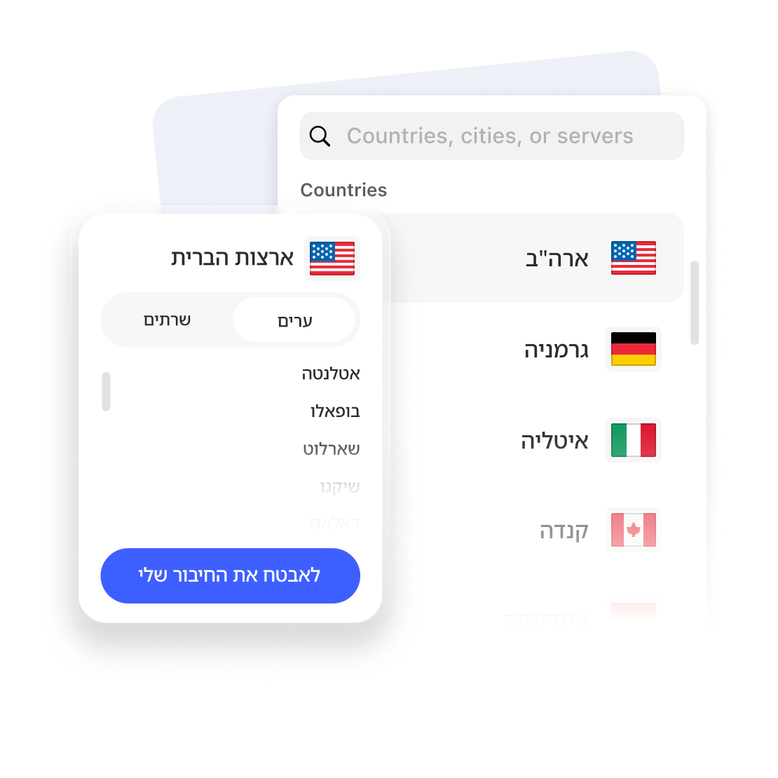 בחרו מבין שרתי 9,200+ NordVPN ברחבי העולם