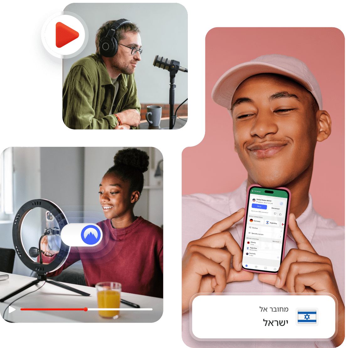 NordVPN מצפין את חיבור האינטרנט שלכם ומסתיר את כתובת ה-IP ואת המיקום שלכם, וכך תהיו הרבה יותר בטוחים ותגלשו באינטרנט בפרטיות. זה כל מה שצריך לעשות: