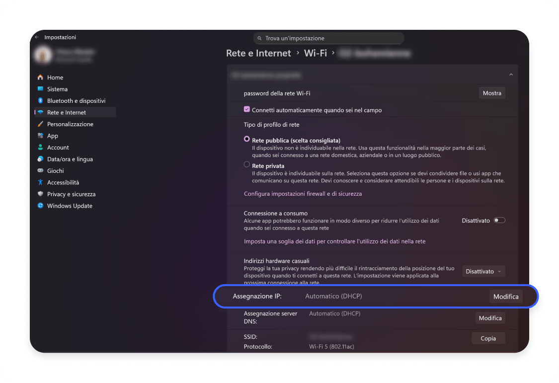 5. 5.Nella sezione Assegnazione IP, fai click su Modifica.