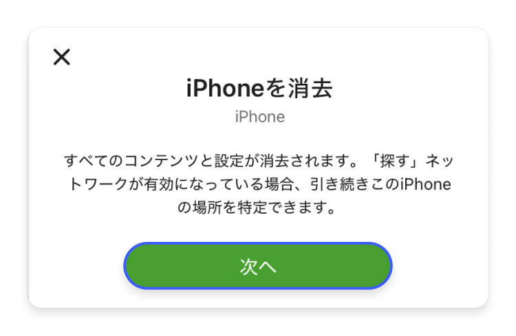 - 4.「このデバイスを消去」を選び、遠隔消去を実行します。
