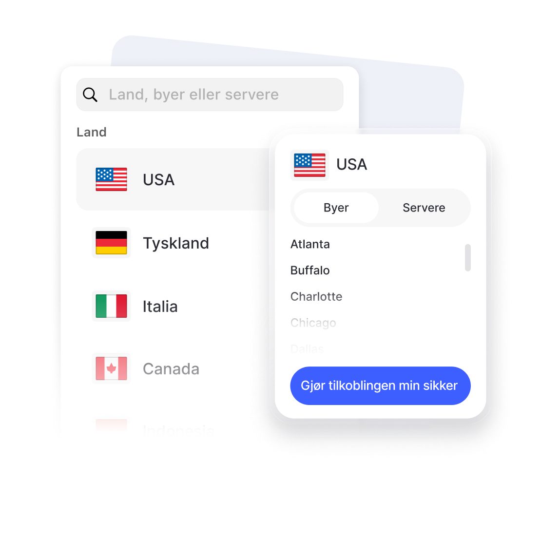 • Velg blant mer enn 9200 NordVPN-servere over hele verden