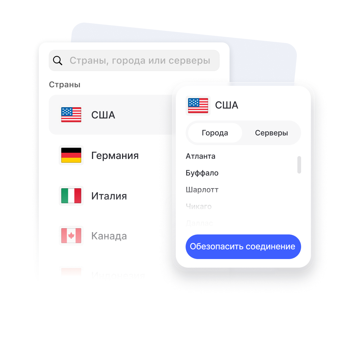 • Выбирайте более чем из 9200 серверов NordVPN по всему миру
